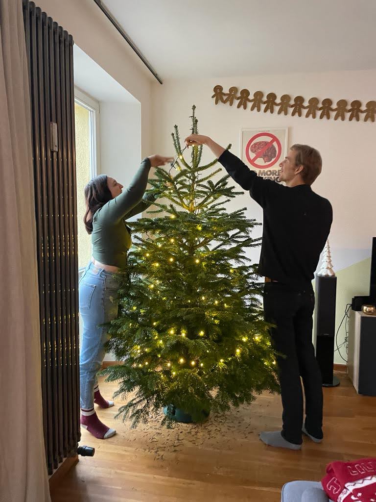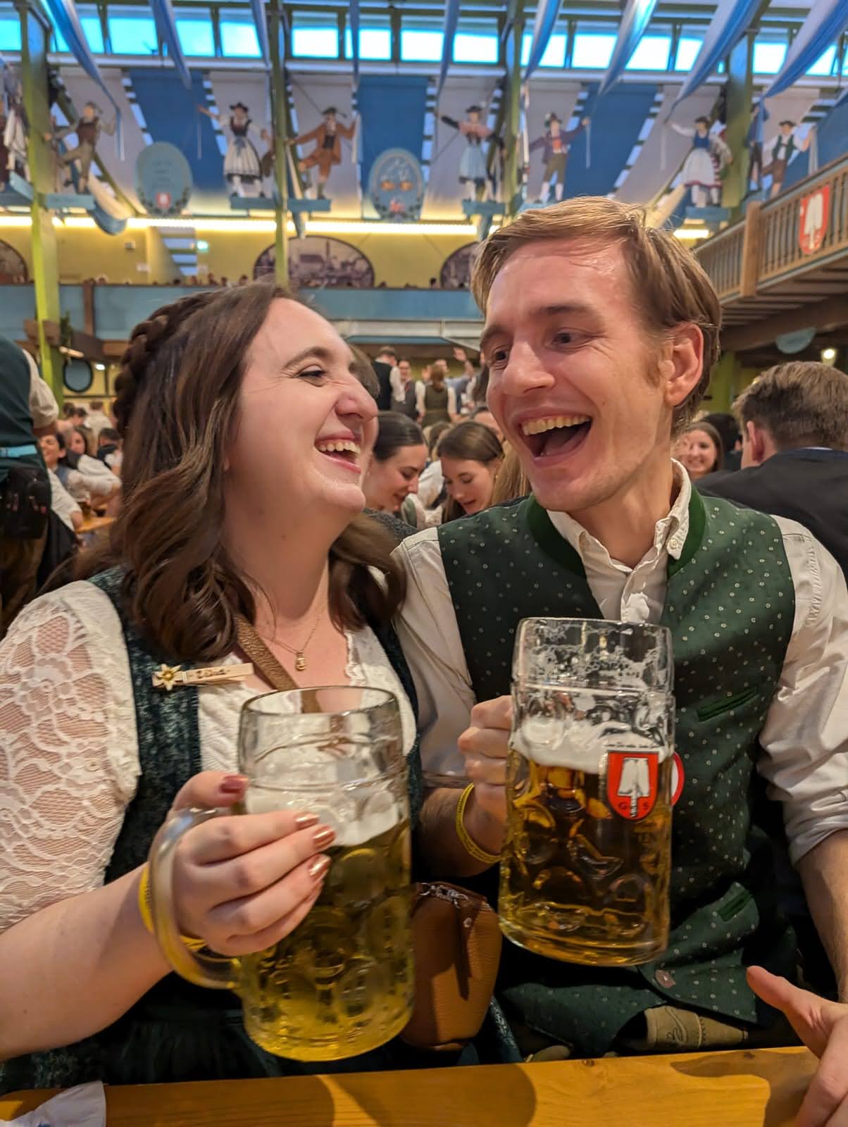 After moving to Munich from California for her Master’s degree in September of 2018, Lilia decided to give online dating a try. When Jakob turned up to our first date in canary-yellow pants, she knew she was about to meet someone special! We watched the sunset over the city, chatted for hours, and promptly fell in love. We dated long distance while both studying abroad in Edinburgh and Barcelona, and immediately knew that being apart just wasn’t going to work. So Lilia and Jakob moved in together into an apartment in Westend, Munich. Jakob came to California for Christmas to meet Lilia’s famiy, and learned an important lesson about how much fun it is to live in a house full of dogs.